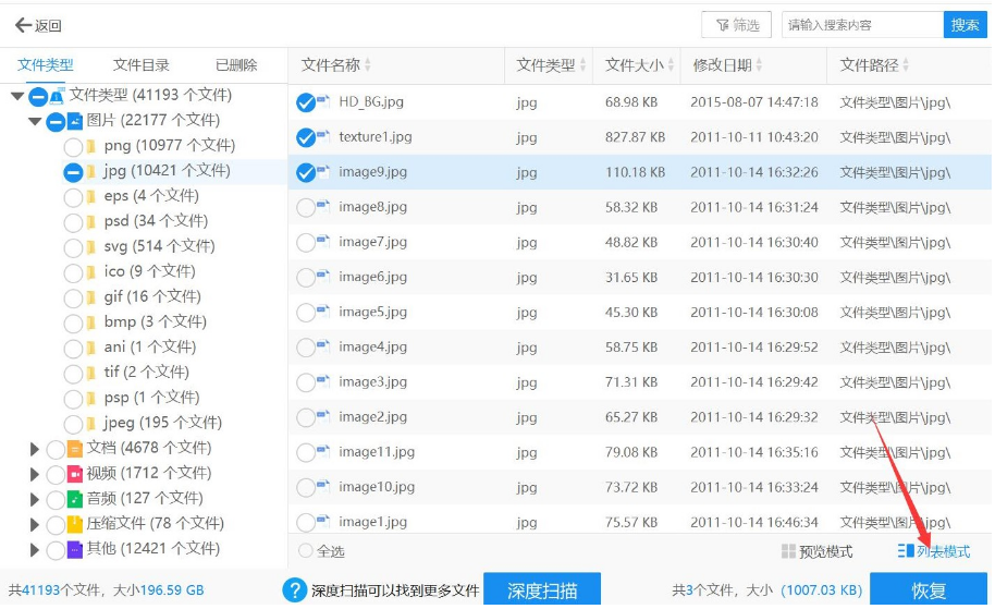 3.數(shù)據(jù)掃描好后,選擇我們要恢復(fù)的文件,點擊“恢復(fù)”按鈕。
