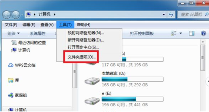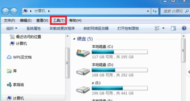 4、U盤文件夾如果被隱藏也是其中一個原因,打開計算機,點擊上方菜單欄中的【工具】。