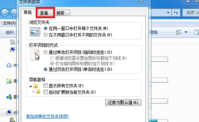 2、打開文件夾選項界面,在查看下選擇【顯示隱藏的文件、文件夾和驅(qū)動器】。