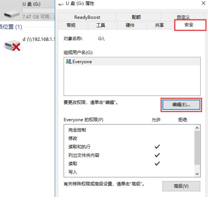 3、在屬性窗口上邊尋找并點(diǎn)擊安全,在安全選項(xiàng)卡中間尋找并點(diǎn)擊編輯。