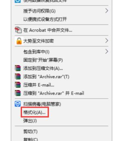 8、物理學(xué)壞道造成的U盤(pán)寫(xiě)保護(hù),那麼就必須對(duì)該U盤(pán)開(kāi)展低格。在U盤(pán)的上邊點(diǎn)擊右鍵,在彈出的菜單中點(diǎn)擊格式化。