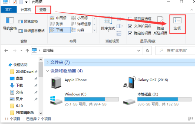 1、首先在我們排除掉硬件的原因后,我們把插入u盤進(jìn)電腦。然后打開(kāi)電腦系統(tǒng)的「此電腦」,點(diǎn)擊「查看」-「選項(xiàng)」。