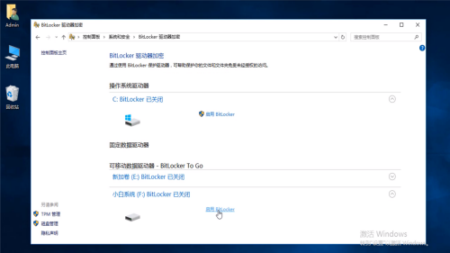 3、選擇需要加密的U盤,點(diǎn)擊“啟用BitLocker”。