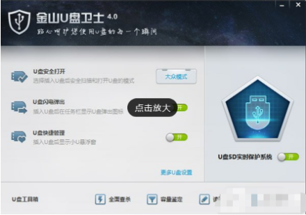 金山U盤衛(wèi)士它是一款鑒定U盤真?zhèn)我约皽y試U盤速度的小工具,提取于金山衛(wèi)士4.7最新版本,純綠色版,即下即用,能夠幫助大家一鍵精準測試出U盤的真?zhèn)芜€有U盤的讀寫速度,讓大家能夠掌握自己的U盤性能優(yōu)劣,判斷出U盤的好壞等等。