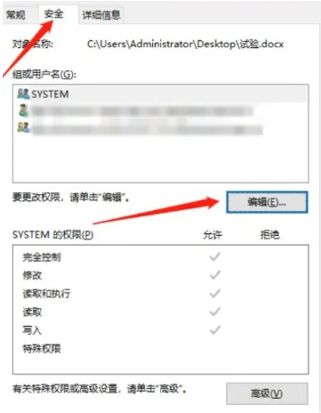 2、點擊“安全”,點擊“編輯”即可;