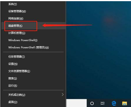 1、同時(shí)按住【win+X】組合鍵,點(diǎn)擊進(jìn)入【磁盤管理】。