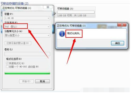 4、當(dāng)出現(xiàn)以上錯(cuò)誤的提示時(shí),由于大面板壞道的產(chǎn)生,致使U盤可用容量大大減少,因此只能使用“Fat”文件系統(tǒng)進(jìn)行格式化U盤。