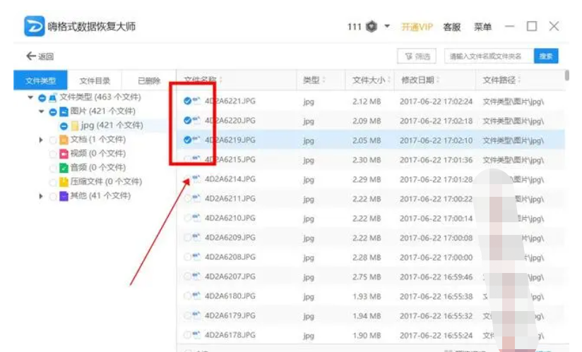 3、掃描至100%后,在掃描結(jié)果中找到并選中文件,點(diǎn)擊右下角的“開始恢復(fù)”;