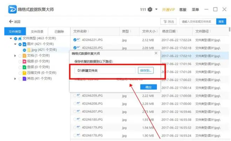 4、在正式恢復(fù)前,點(diǎn)擊“保存至”選擇下這恢復(fù)文件的存儲(chǔ)位置,選好點(diǎn)擊確定;
