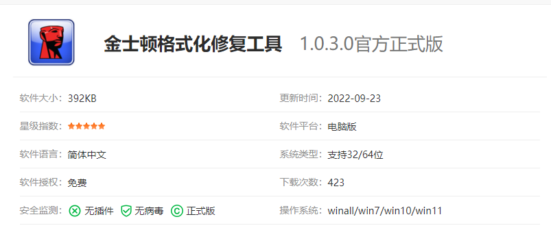 1、金士頓專用格式化工具。kingston format utility可以將u盤進行格式化,對于無法讀取的金士頓優(yōu)盤進行讀取,對于損壞的扇葉進行修復。操作方法也比較簡單,是一款相當不錯的U盤修復工具。