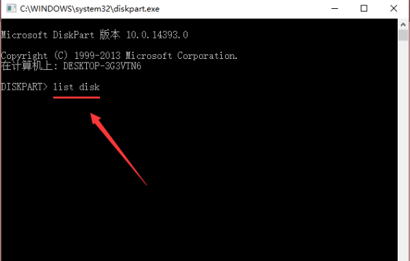 2、輸入diskpart,再按下回車鍵進(jìn)入了磁盤管理命令模式。
