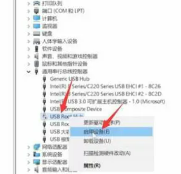 5、 再次右鍵同一個(gè)設(shè)備選項(xiàng),點(diǎn)擊啟用設(shè)備,再重新插入U(xiǎn)盤就可以在電腦上找到u盤了。