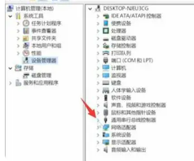 2、 點(diǎn)擊左側(cè)的設(shè)備管理器,再點(diǎn)擊通用串行總線控制器。