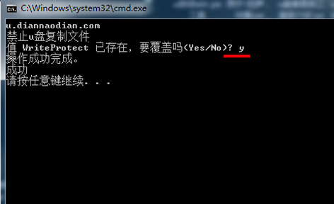 七、輸入y后,再按回車鍵確認覆蓋,并提示操作成功完成,按任意鍵繼續(xù)