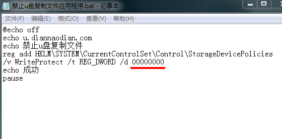 五、然后雙擊運行禁止u盤復制文件應用程序.bat文件(注:先把u盤拔除,否則當前插在電腦的u盤還是可以執(zhí)行復制操作)