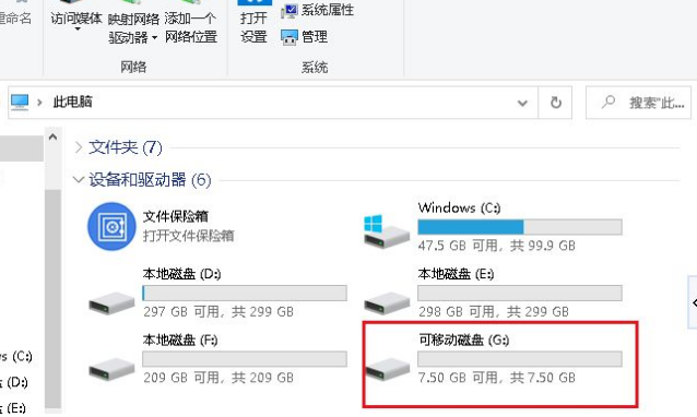 5、重新插入U盤,打開此電腦,移動盤符出現,設置完成。