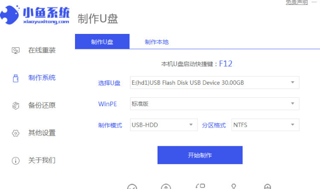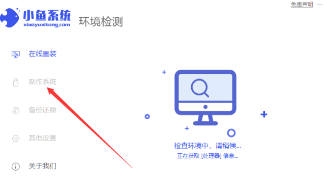 1、首先關掉計算機上運行的殺毒軟件,隨后打開小魚一鍵重裝系統(tǒng),隨后選擇制作系統(tǒng)里面的[U盤模式]。