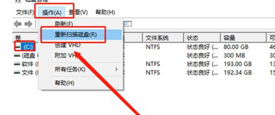 2.選中u盤,點(diǎn)擊工具欄的【操作】,選擇【重新掃描磁盤】進(jìn)行修復(fù)即可。