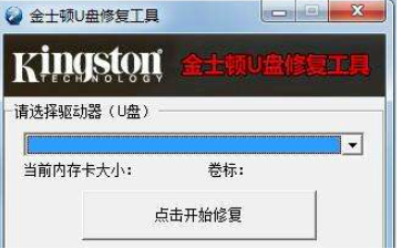 2.下載完成之后將其打開(kāi),需要修復(fù)的U盤插到電腦,點(diǎn)擊選擇驅(qū)動(dòng)器一欄的下拉列表,選擇U盤盤符,點(diǎn)擊開(kāi)始修復(fù)即可。