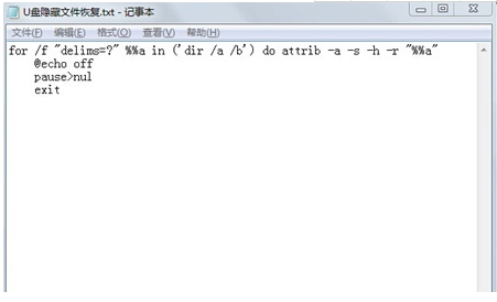 2.創(chuàng)建好了之后,我們將以下的代碼復(fù)制到剛剛新建的空白文檔當(dāng)中(for /f "delims=?" %%a in ('dir /a /b') do attrib -a -s -h -r "%%a")