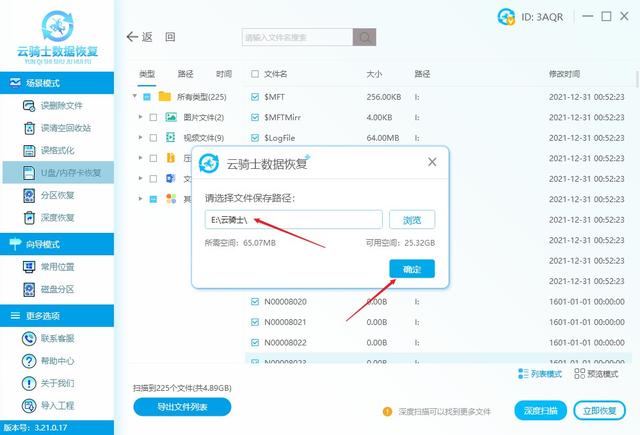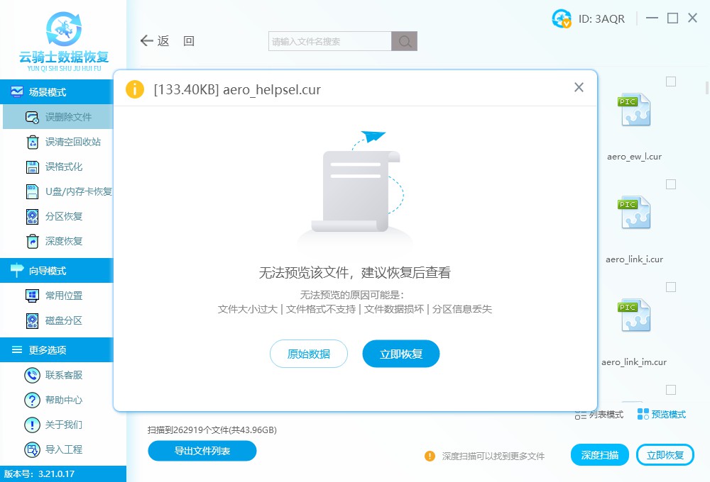 軟件版本:云騎士數(shù)據(jù)恢復(fù)工具3.21