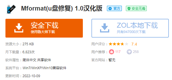 2、萬能U盤修復(fù)格式化工具mformat