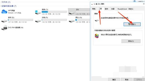 進(jìn)入我的電腦,找到自己的U盤右擊屬性。