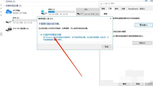 點(diǎn)擊掃描并修復(fù)驅(qū)動(dòng)器,電腦就會自動(dòng)修復(fù)被寫保護(hù)的U盤,等待掃描完成,就可以格式化U盤了。