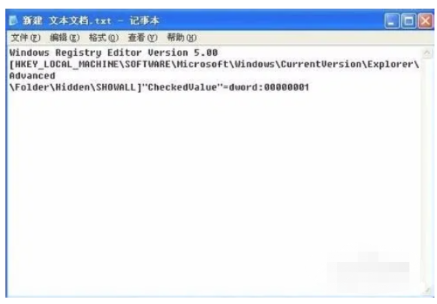 [HKEY_LOCAL_ MACHINE \SOFTWARE\Microsoft\Windows\CurrentVersion\Explorer\Advanced\Folder\Hidden\SHOWALL]“CheckedValue"=dword:00000001