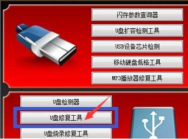 5、點(diǎn)擊“U盤燒錄修復(fù)工具”實(shí)現(xiàn)對(duì)U盤徹底的修復(fù)操作。