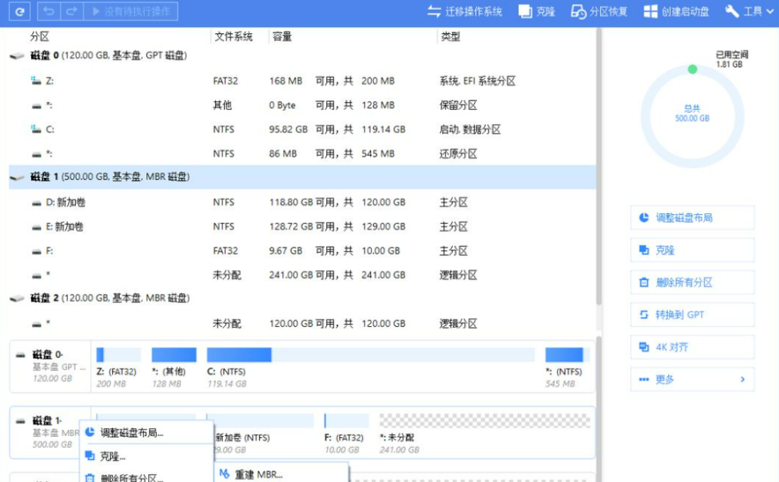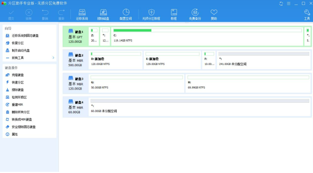 通過這款軟件,我們可以調(diào)整分區(qū)大小,創(chuàng)建、移動、合并、格式化、刪除分區(qū),克隆分區(qū)或磁盤,遷移操作系統(tǒng),恢復(fù)丟失分區(qū),實現(xiàn)磁盤、分區(qū)格式轉(zhuǎn)換等,操作簡單,新手都能輕松上手。