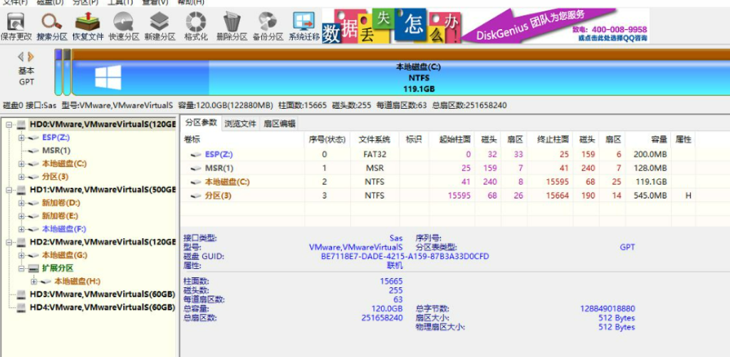 DiskGenius這款軟件功能非常強大,軟件界面是長下面這樣的,一看就很專業(yè):