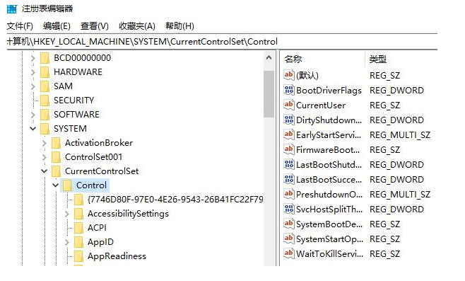 2、接著依次展開(kāi):HKEY_LOCAL_MACHINE\SYSTEM\CurrentControlSet\Control,看右側(cè)是否有“StorageDevicePolicies”。