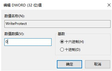 6、打開(kāi)之后把數(shù)值數(shù)據(jù)設(shè)置為0,點(diǎn)擊“確定”插入U(xiǎn)盤(pán)即可成功解除金士頓u盤(pán)加密狀態(tài)了。