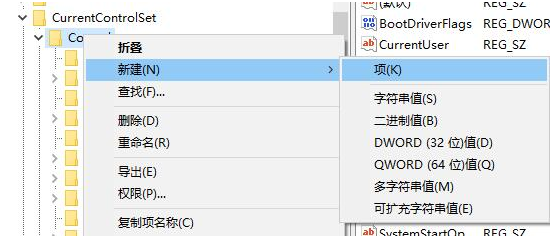 3、如果沒(méi)有的話就需要新建,鼠標(biāo)右鍵點(diǎn)擊Control文件夾,點(diǎn)擊“新建-項(xiàng)”,命名為“StorageDevicePolicies”。