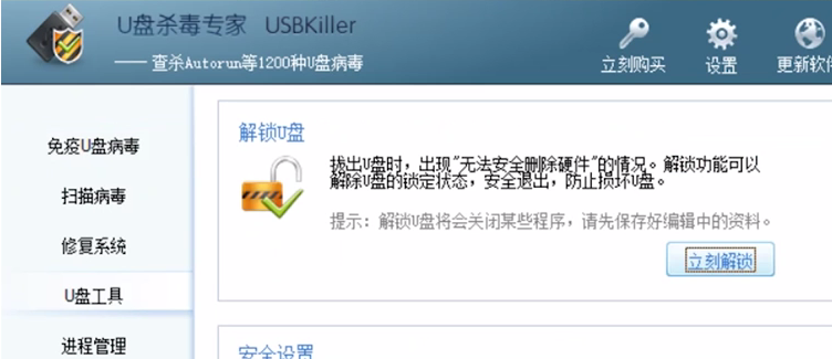比較好用的小編推薦USBCleaner工具,插入金士頓u盤(pán)進(jìn)電腦之后,自行下載安裝好軟件并點(diǎn)擊打開(kāi),找到“u盤(pán)保護(hù)”,點(diǎn)擊“立即解鎖”,選擇確認(rèn)即可解除金士頓u盤(pán)加密。