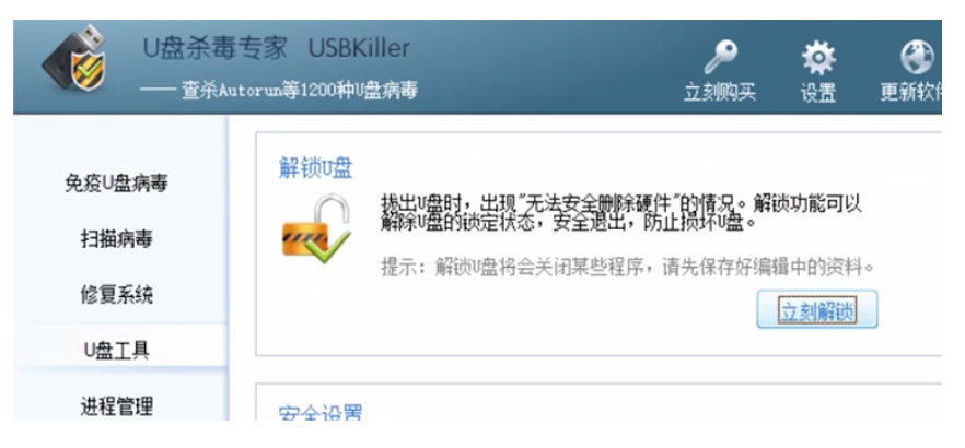 比較好用的我就推薦USBCleaner工具,插入金士頓u盤進(jìn)電腦后,自行下載安裝好軟件并打開,找到“u盤保護(hù)”,點(diǎn)擊“立即解鎖”,選擇確認(rèn)就可解除保護(hù)。