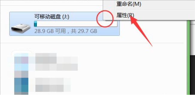 2、接著,在該界面,盤符上右擊,即可彈出相關(guān)菜單,最底部為屬性項(xiàng),點(diǎn)擊查看該磁盤的屬性。