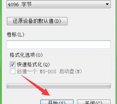 6、最后,點(diǎn)擊最下方的開(kāi)始按鈕,即可立即開(kāi)始,這樣就不可以終止,格式更改完成后,U盤內(nèi)容會(huì)清空。這樣就可以拷貝大文件了。