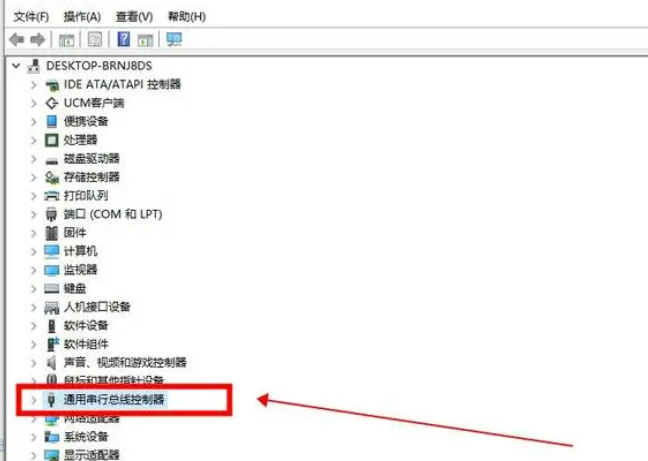 2、在設(shè)備管理器窗口中,找到并點擊“通用串行總線控制器”;