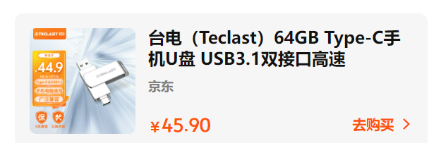 3、臺(tái)電睿動(dòng),適合有連接安卓手機(jī)等其他雙接口需求的朋友選擇的U盤,性能雖然不是很強(qiáng),但是價(jià)格很實(shí)惠。