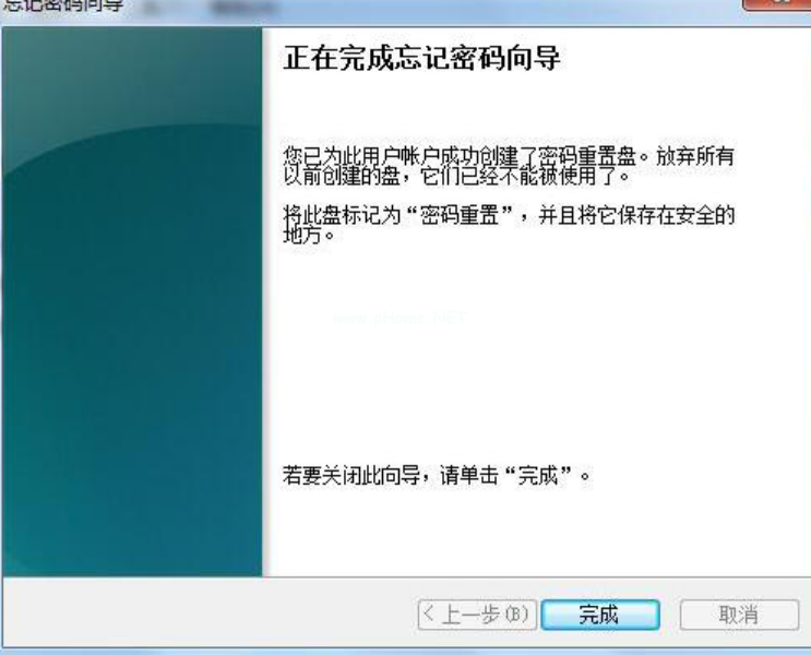 6、創(chuàng)建磁盤后密碼重置磁盤進(jìn)程;創(chuàng)建完成后,如圖所示: