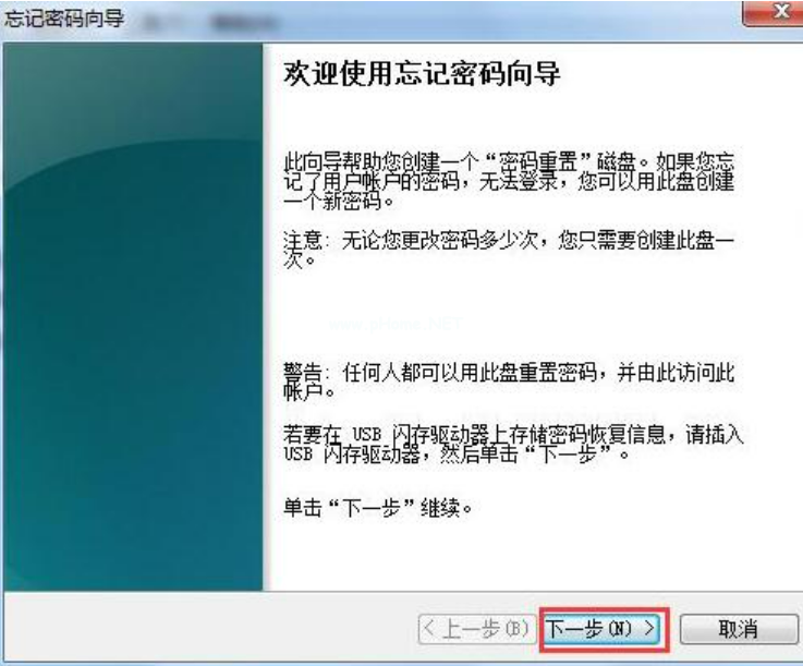 3、彈出“忘記密碼向?qū)А贝翱?,然后單擊“下一步?
