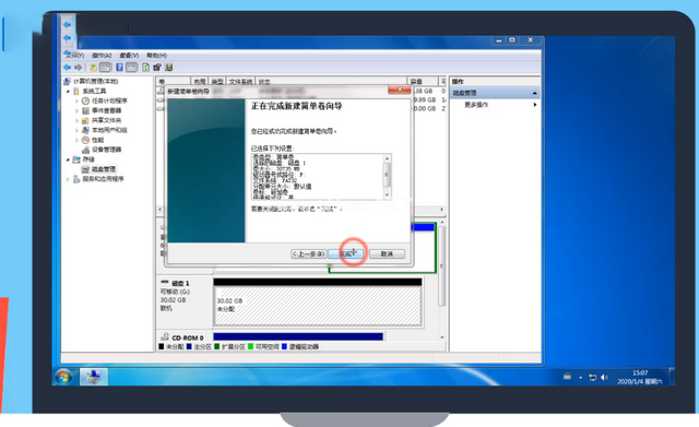 8、回到剛才的管理窗口界面,鼠標(biāo)右鍵格式化后的u盤,點(diǎn)擊新建簡單卷。