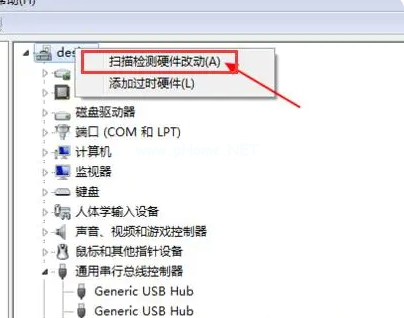 5、卸載完成后,鼠標(biāo)右擊選擇計(jì)算機(jī)名,選擇“掃描檢測(cè)硬件改動(dòng)”即可。
