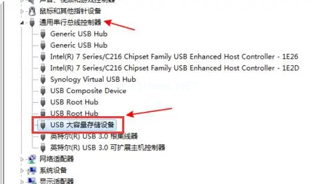 3、在設(shè)備列表中展開(kāi),點(diǎn)擊選擇“USB大容量存儲(chǔ)設(shè)備”。