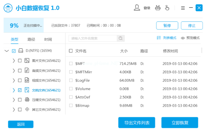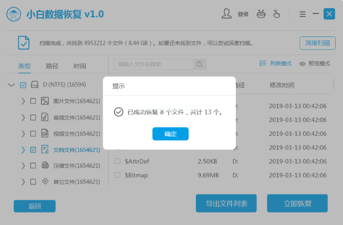 3、掃描好后就能夠看到掃描出來(lái)U盤(pán)中的文件,找到并勾選好要恢復(fù)的文件,點(diǎn)擊右下角的“立即恢復(fù)”即可。