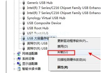 4、選中這個(gè)選項(xiàng)后,單擊右鍵選擇“卸載”。