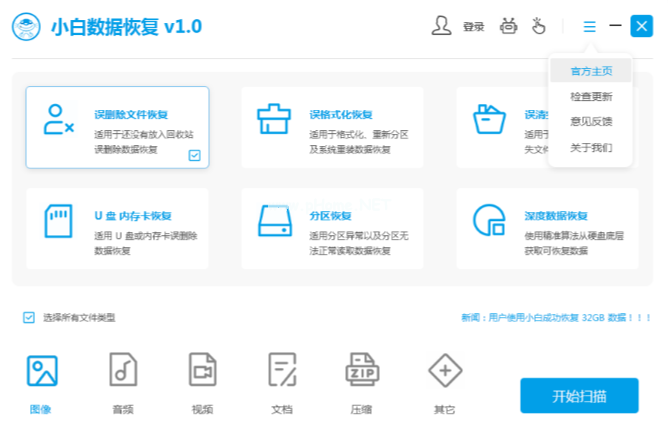 軟件版本:小白專業(yè)數(shù)據(jù)恢復(fù)工具1.0