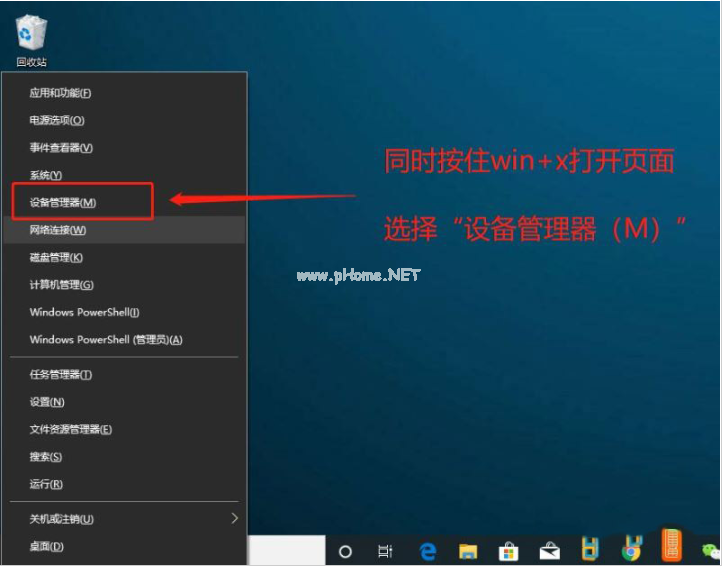 1、同時按住“win+X”,在彈出的頁面中選擇“設備管理器”打開。